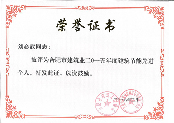 大會現(xiàn)場宣讀了有關(guān)表彰通報,安徽威耐得新型建材有限公司董事長劉必武榮獲“合肥市建筑業(yè)2015年度建筑節(jié)能先進個人”榮譽稱號,省市領(lǐng)導親自頒發(fā)榮譽證書并合影。建筑節(jié)能先進企業(yè)和先進個人的評選活動,旨在弘揚節(jié)能減排、綠色建筑精神,鼓勵和表彰在我市建筑節(jié)能行業(yè)發(fā)展中作出突出貢獻的企業(yè)和個人,提高我市整個建筑行業(yè)的節(jié)能意識,進一步推廣建筑節(jié)能高效技術(shù),宣傳建筑節(jié)能行業(yè)的先進經(jīng)驗。